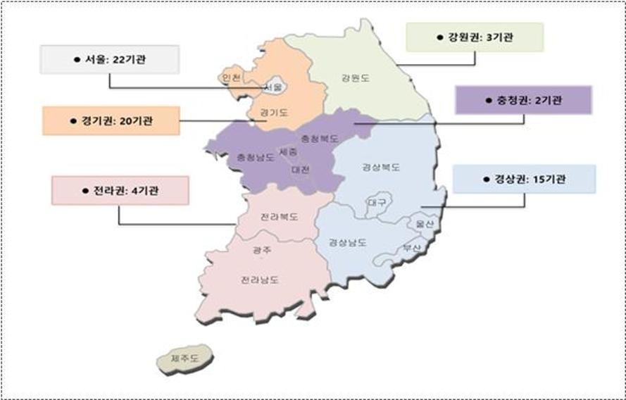전국 권역별로 1등급 기관이 분포했으나 서울·경기 지역에 집중되는 모습을 보였다.