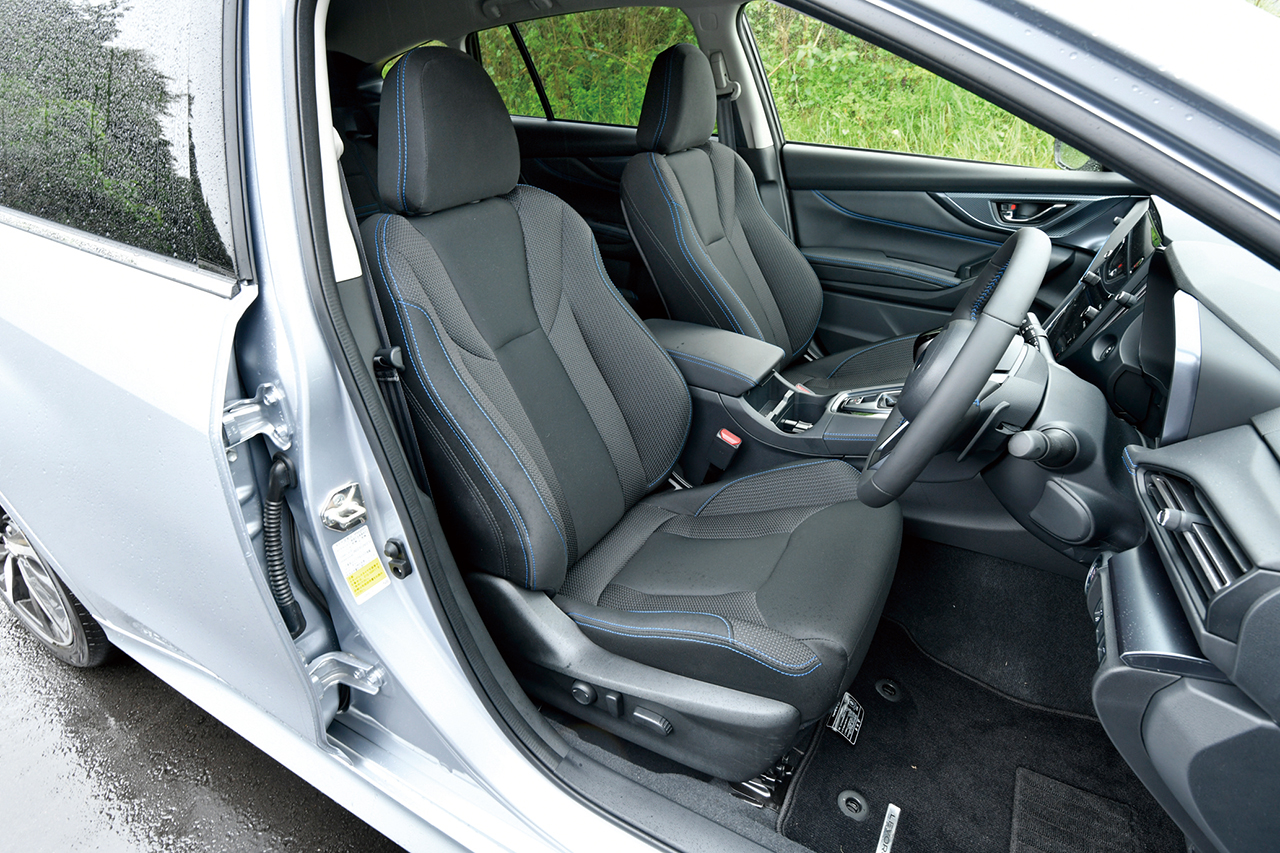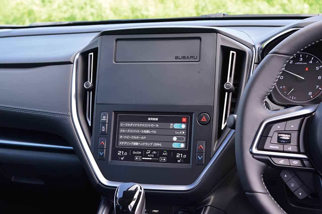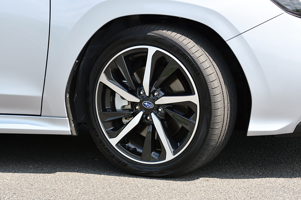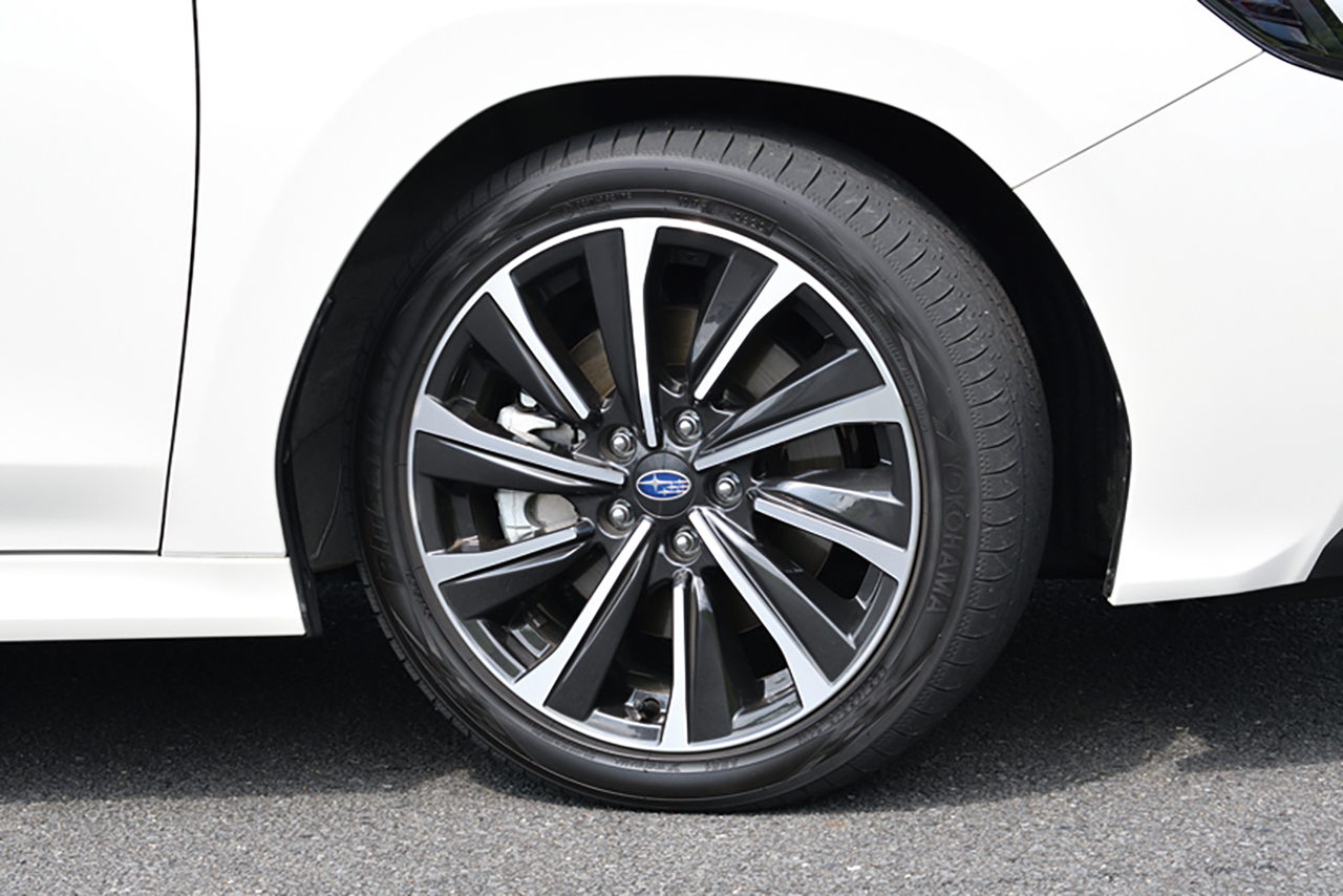 ベースグレードではあるが、ホイールが17インチとなること以外、アンテナや灯火類も上級グレードと同等。アイサイトXも選べる。