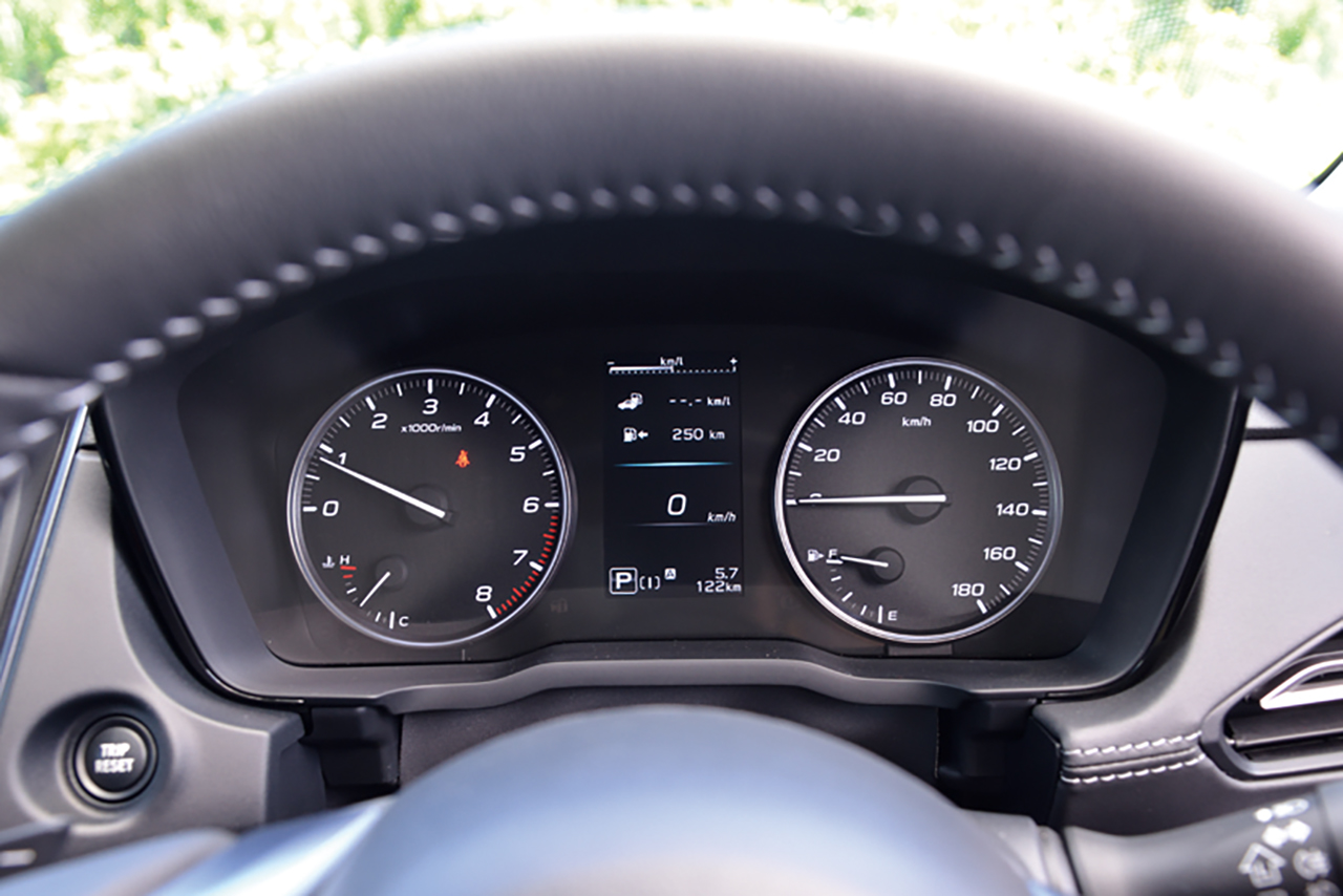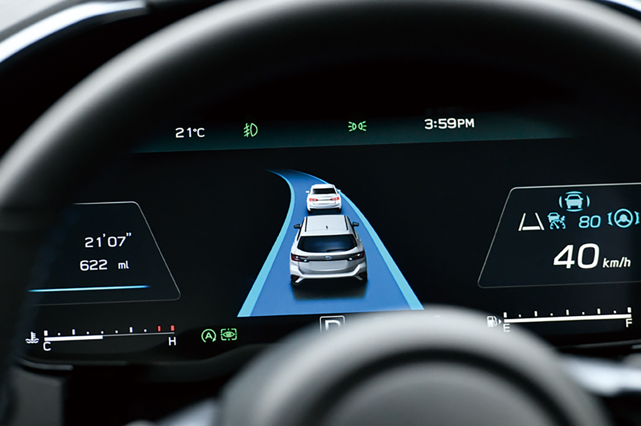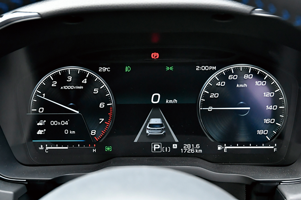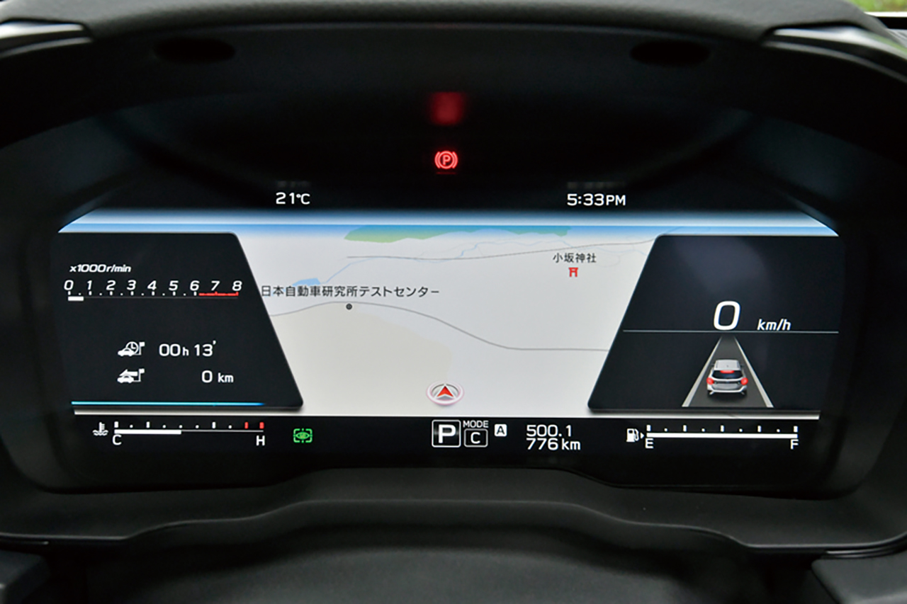 伝統的な2眼メーター風のノーマル画面のほか、マップ、アイサイトをメインに表示する画面に切り替え可能。EXに標準、他は設定なし。