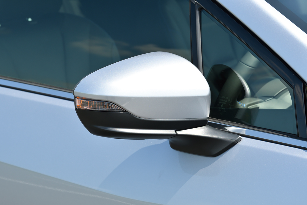 空力に配慮した新形状のミラー。ステーもスリムになった。