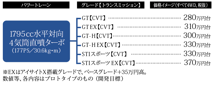 ※新型レヴォーグの写真はすべてプロトタイプ。 各内容はプロトタイプのもので、数値は未確定(開発目標等)のものを含む。